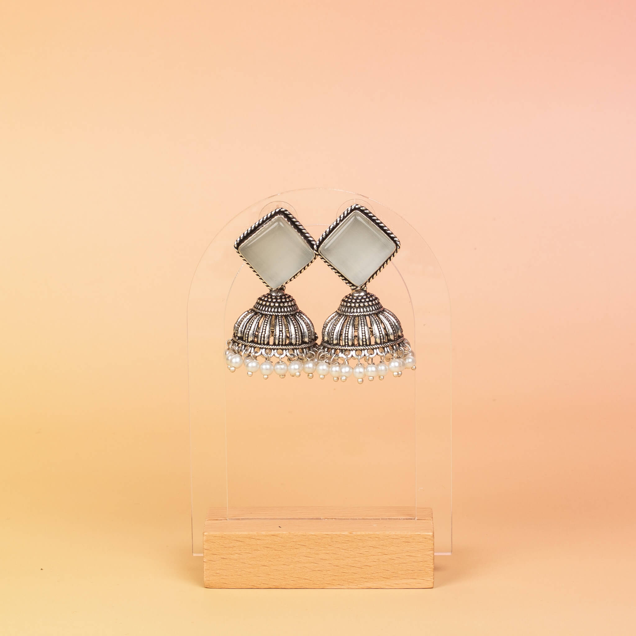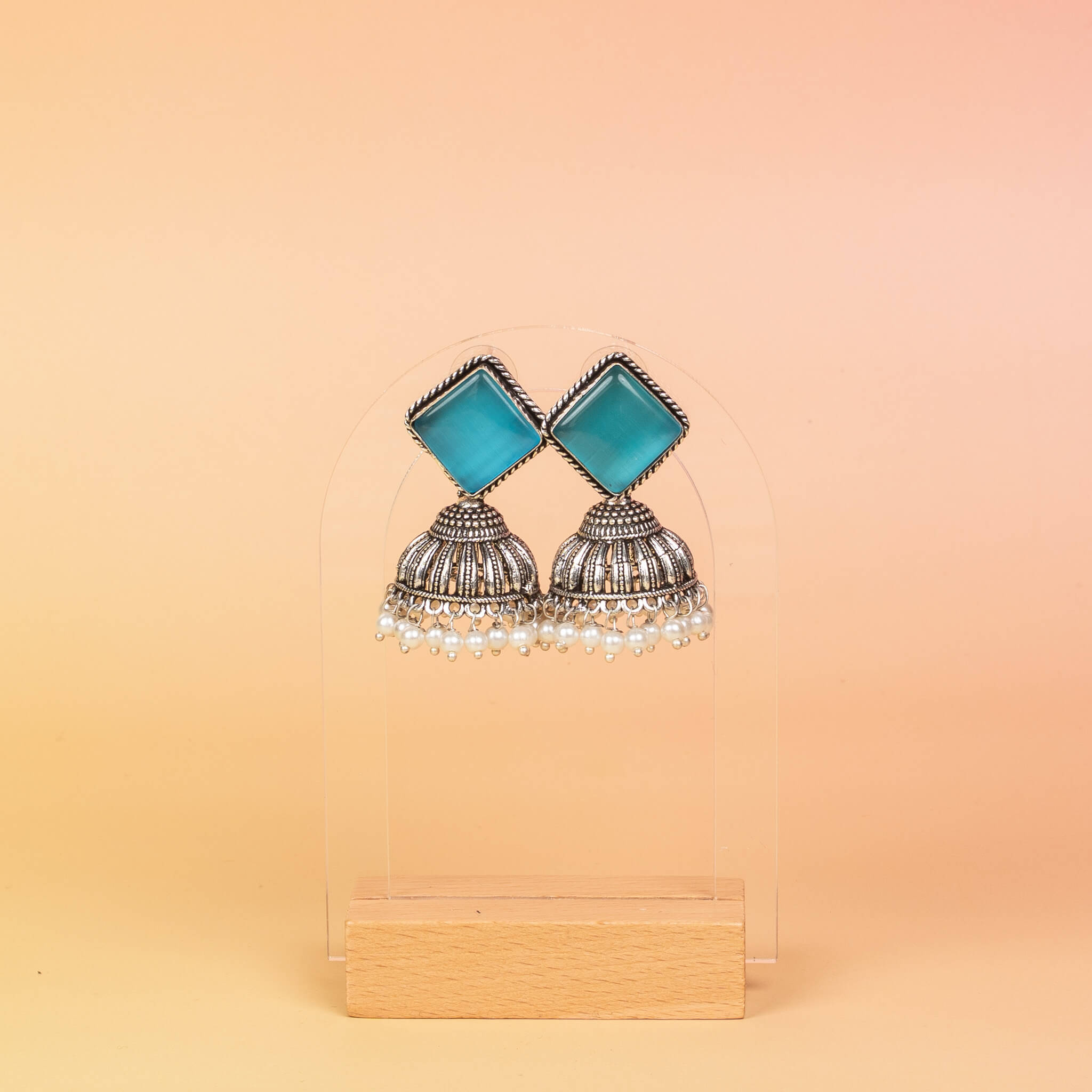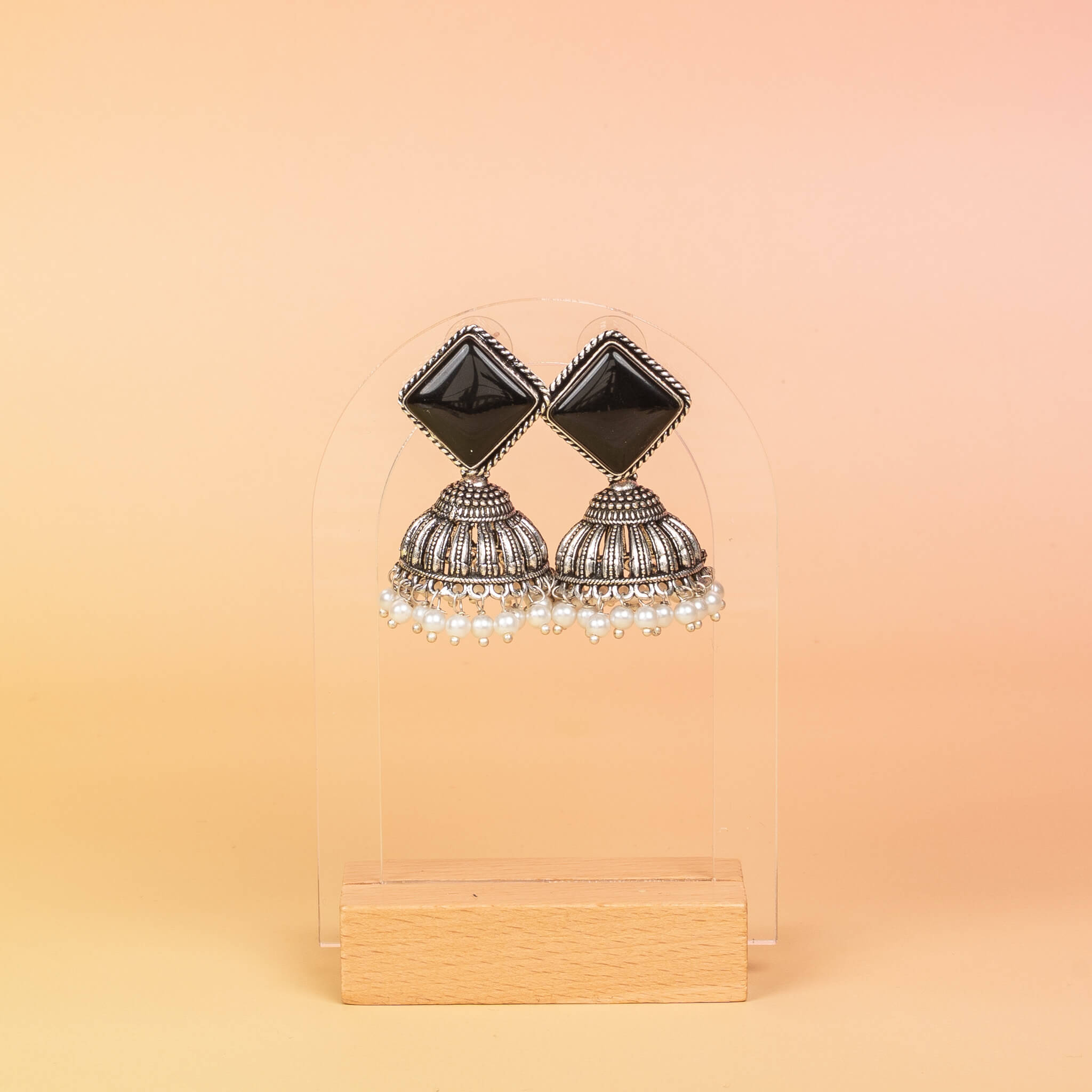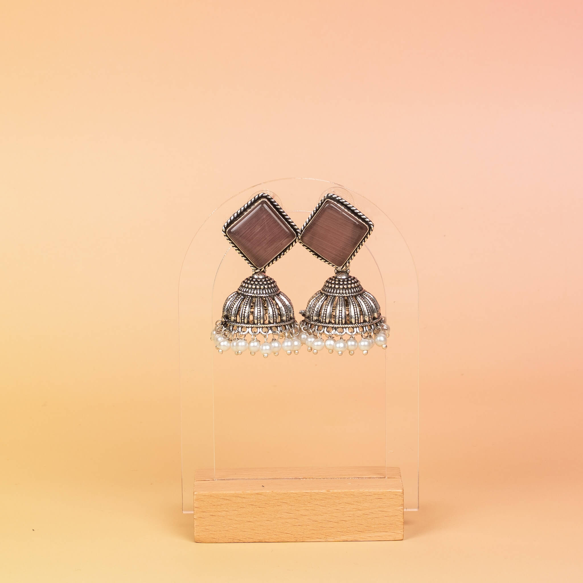 These oxidized earrings feature a striking square stone at the top, adding structure and elegance to the classic design. The traditional Junkie element below brings movement and charm, creating a bold yet balanced look. Though they carry a slightly heavier aesthetic, the earrings remain comfortable and easy to wear thanks to their thoughtfully balanced size – ideal for daily wear or special occasions. Available in eleven stunning colors, from soft neutrals to deep, dramatic tones.
