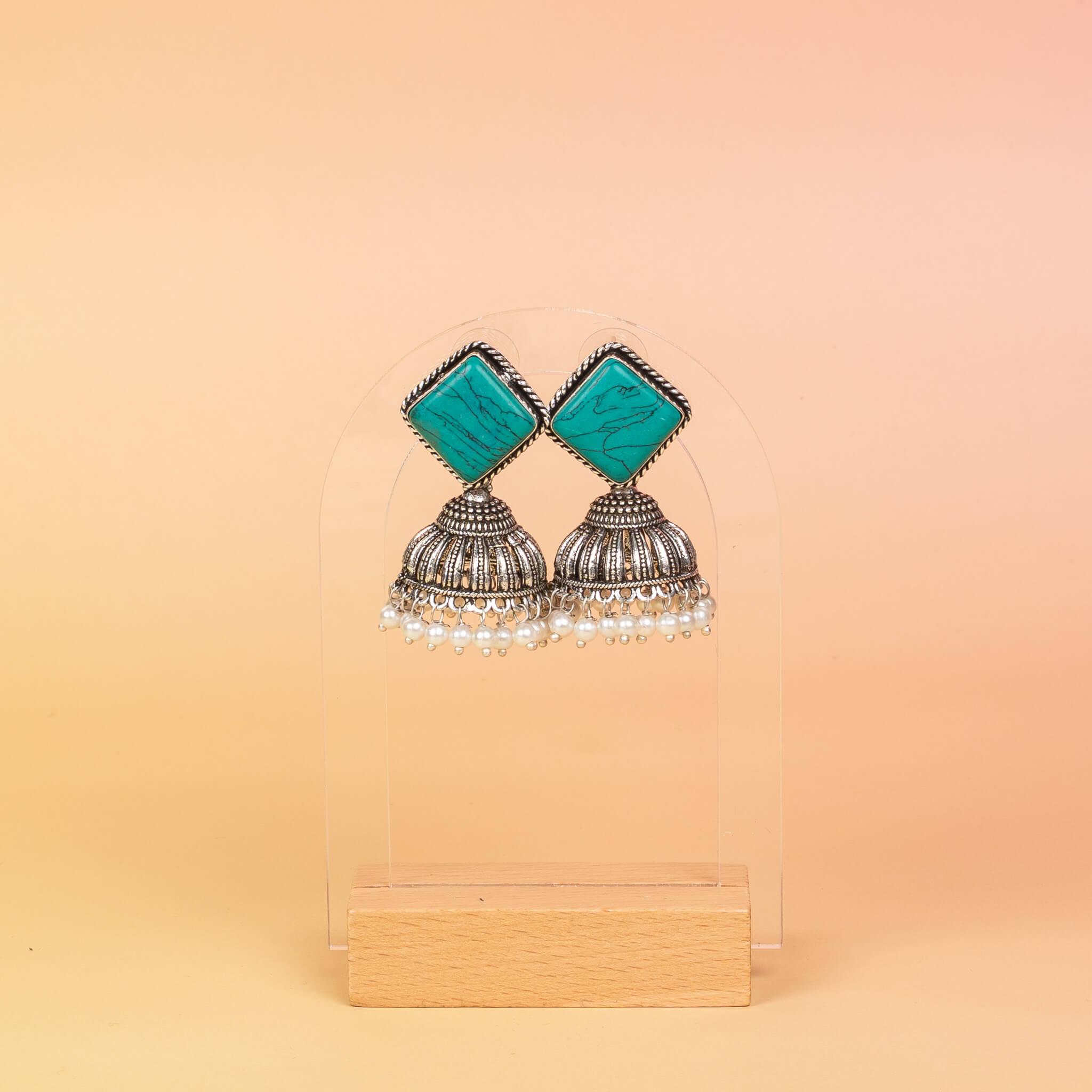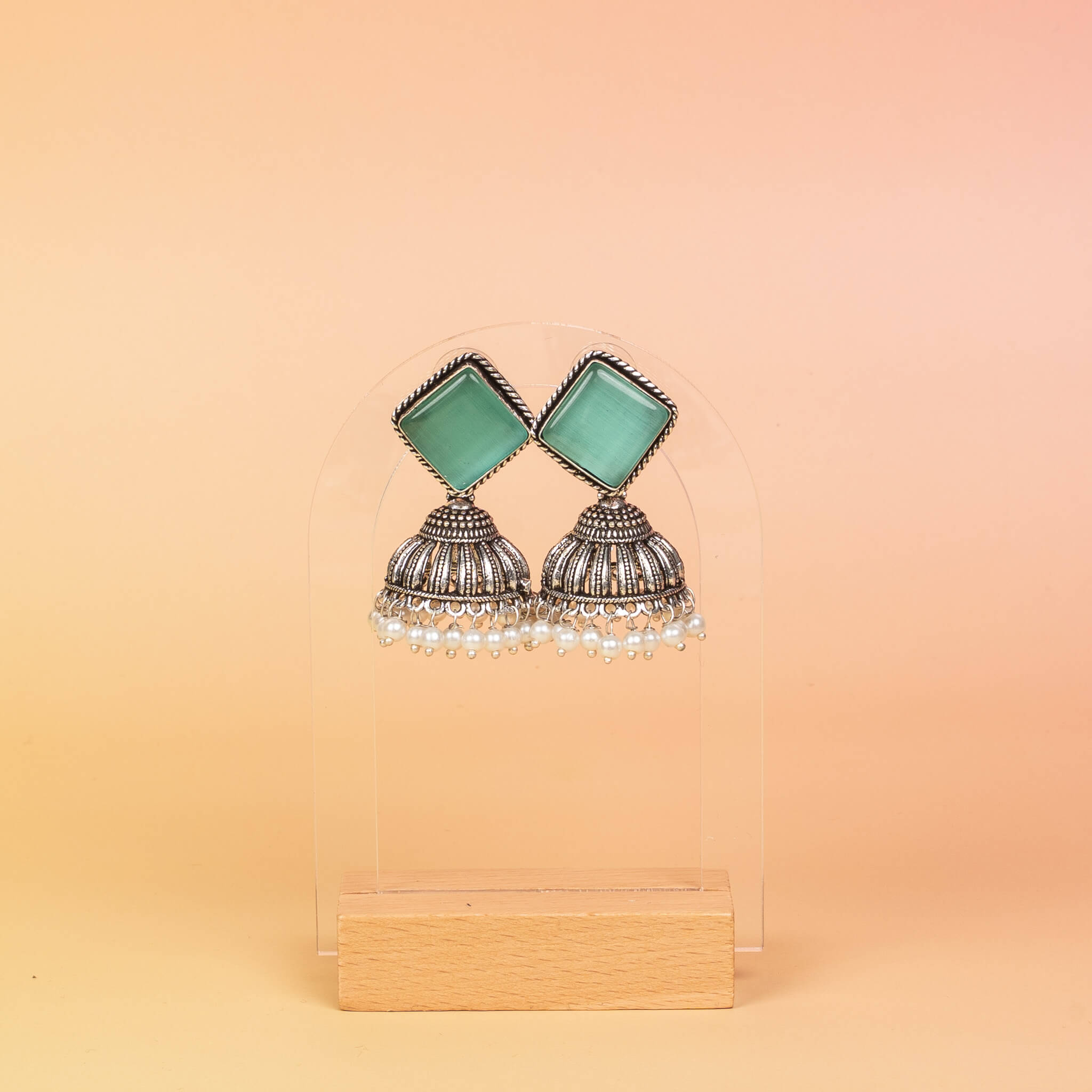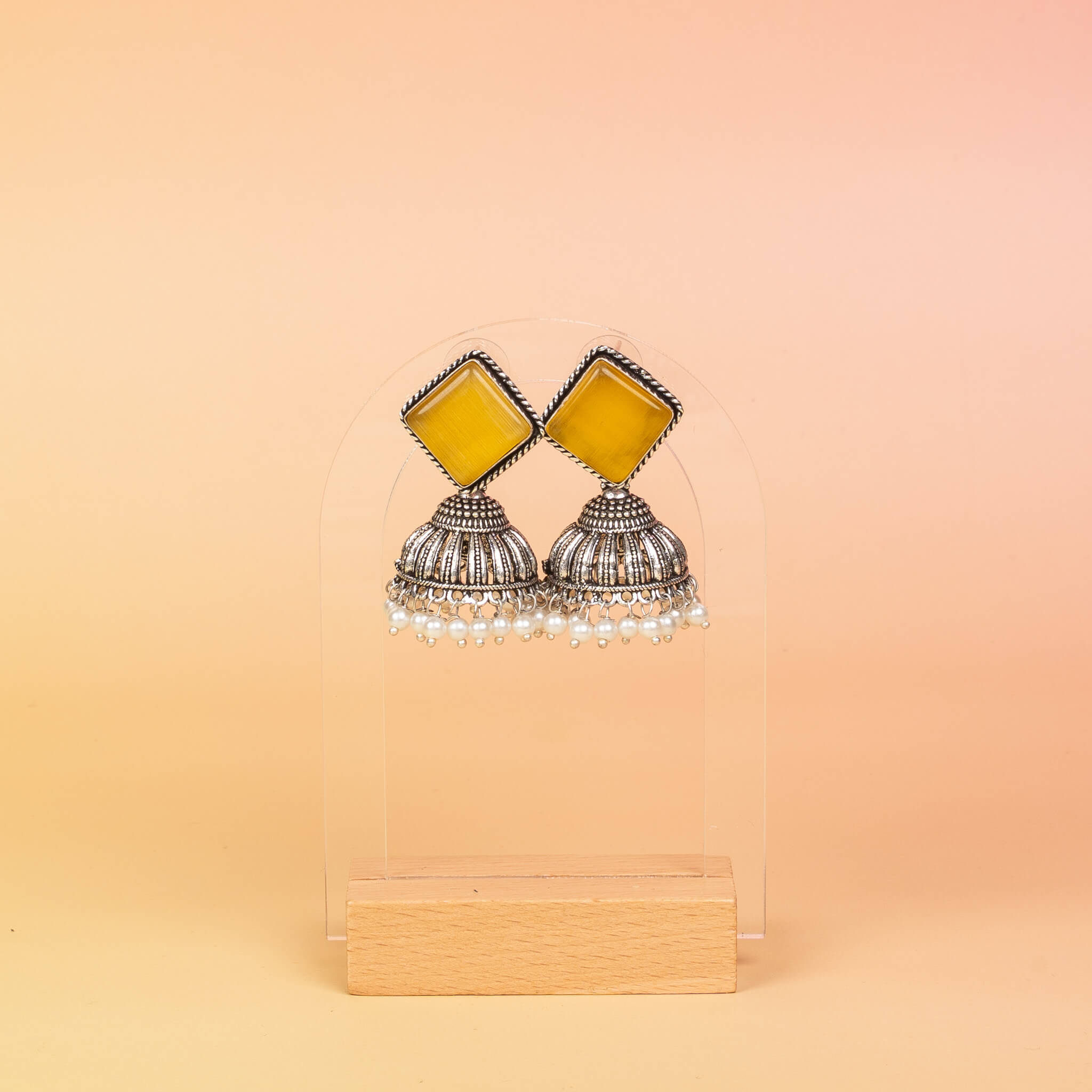 These oxidized earrings feature a striking square stone at the top, adding structure and elegance to the classic design. The traditional Junkie element below brings movement and charm, creating a bold yet balanced look. Though they carry a slightly heavier aesthetic, the earrings remain comfortable and easy to wear thanks to their thoughtfully balanced size – ideal for daily wear or special occasions. Available in eleven stunning colors, from soft neutrals to deep, dramatic tones.