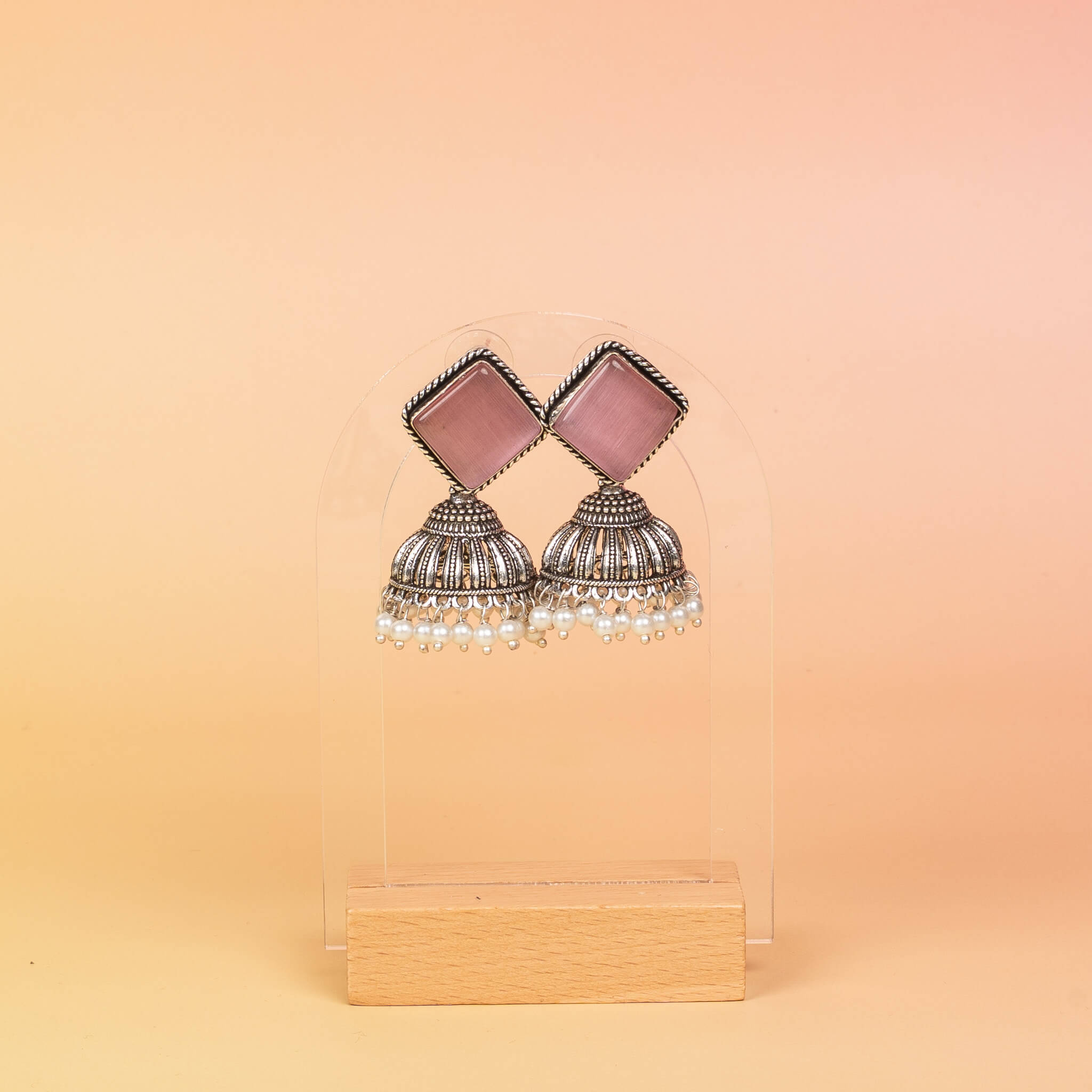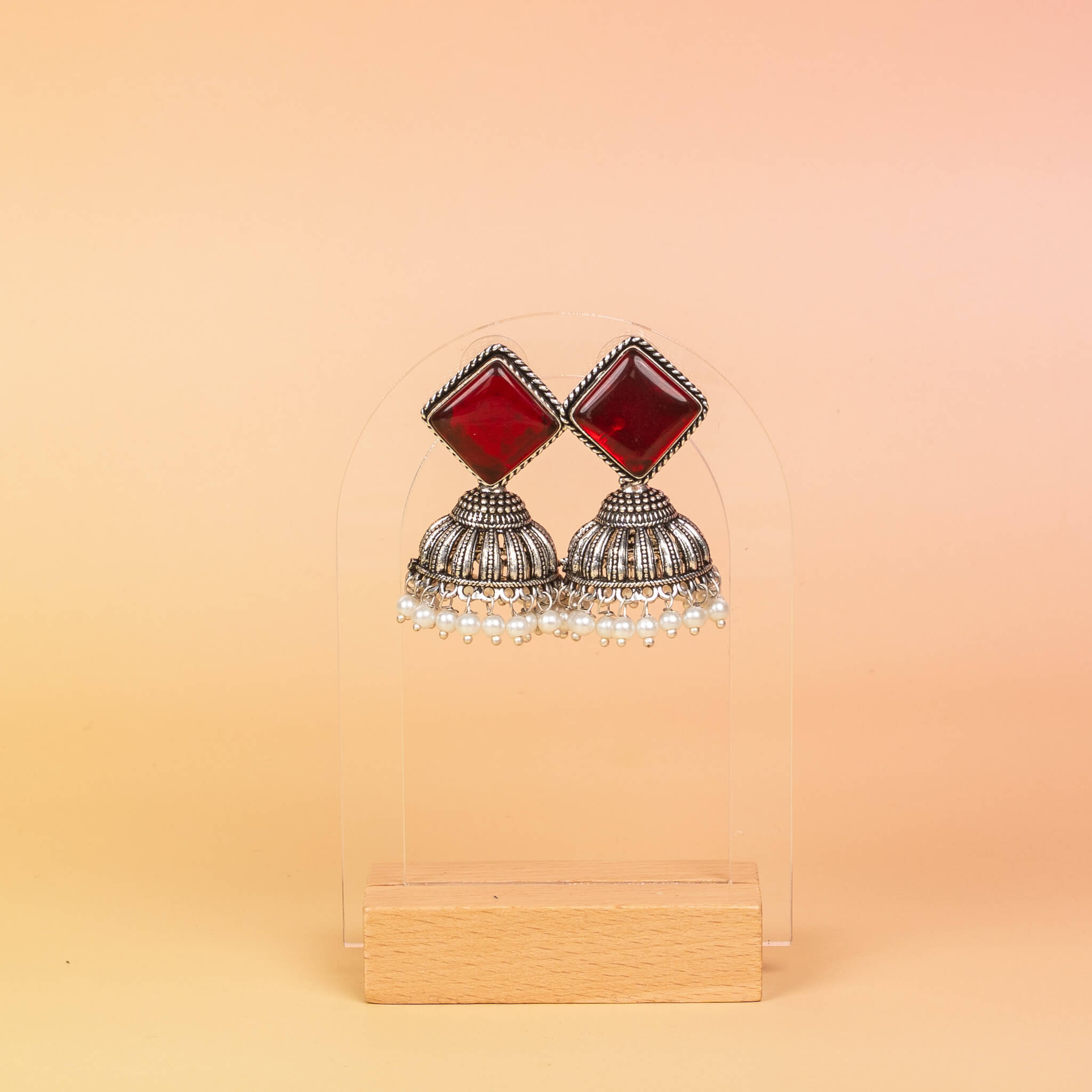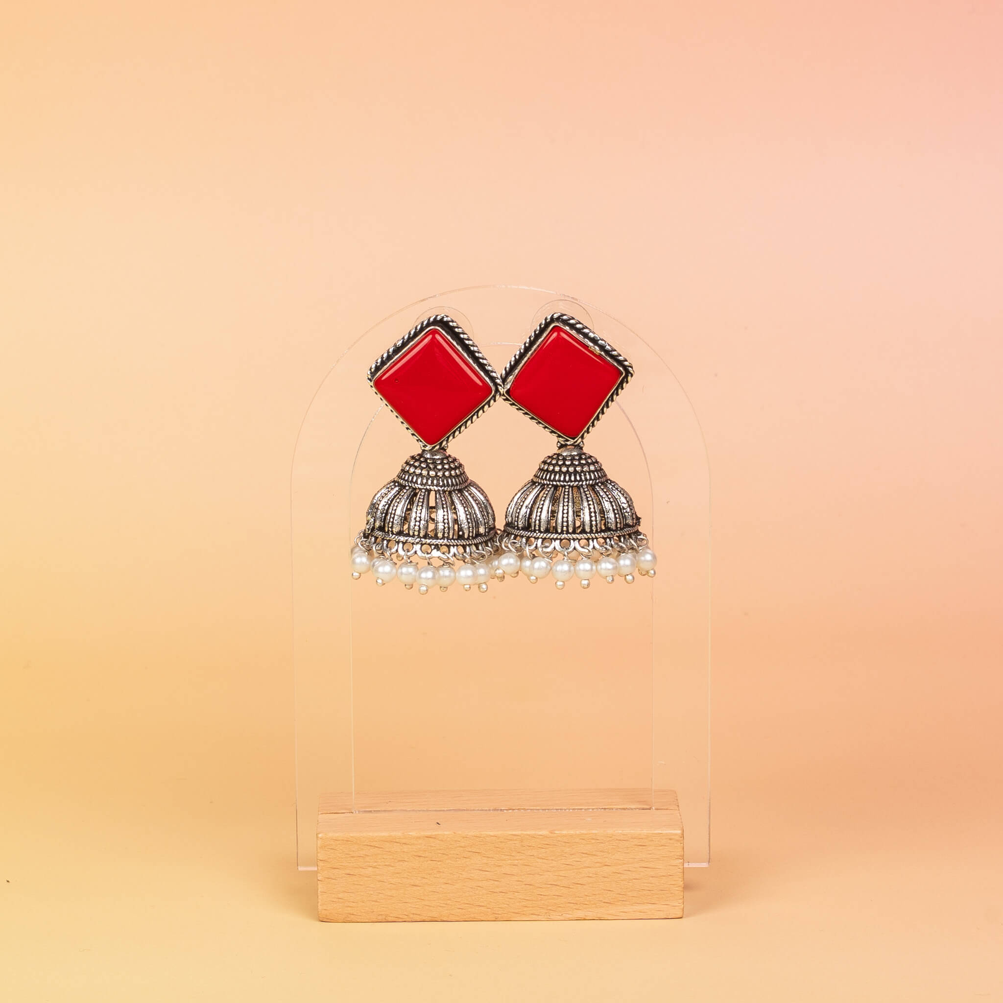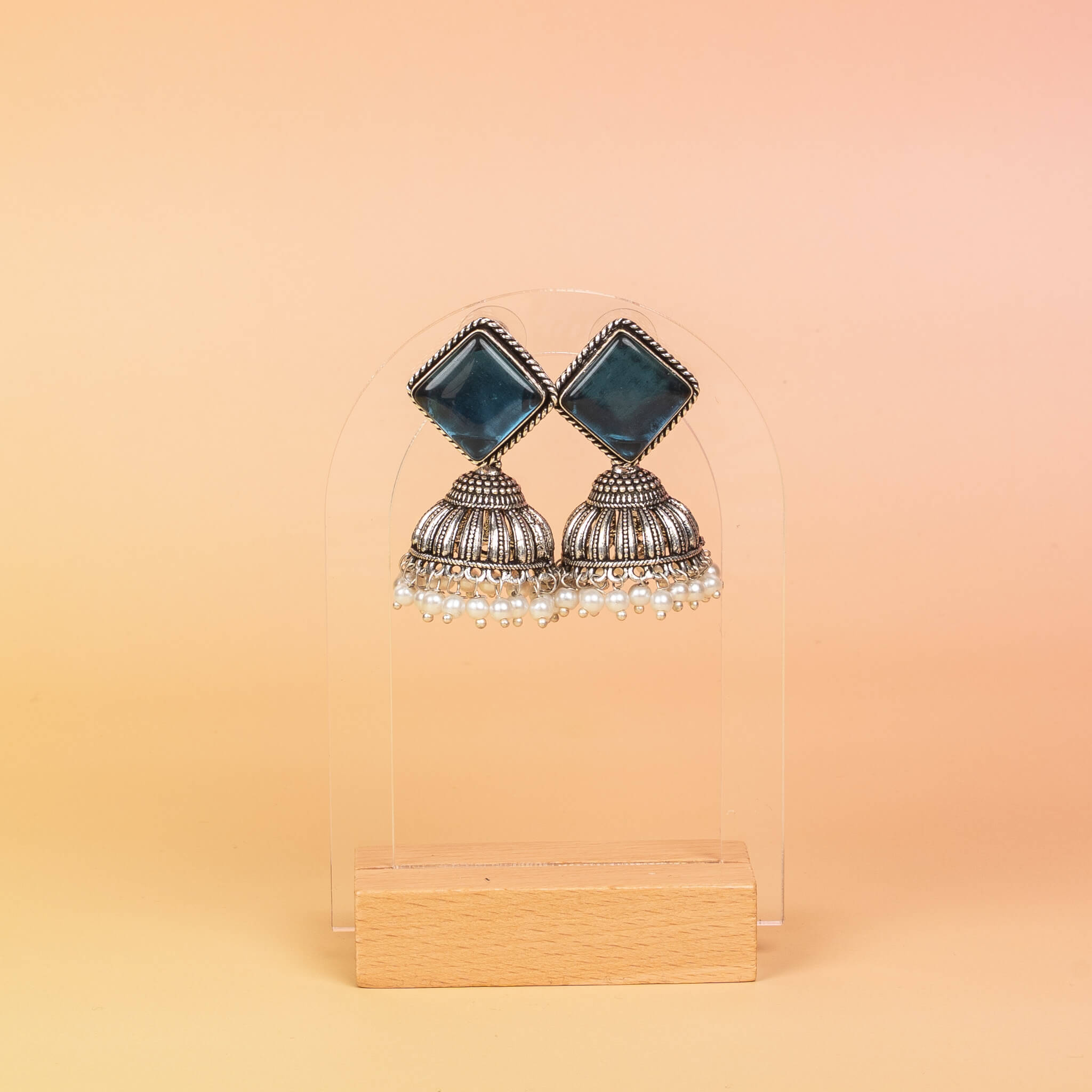 These oxidized earrings feature a striking square stone at the top, adding structure and elegance to the classic design. The traditional Junkie element below brings movement and charm, creating a bold yet balanced look. Though they carry a slightly heavier aesthetic, the earrings remain comfortable and easy to wear thanks to their thoughtfully balanced size – ideal for daily wear or special occasions. Available in eleven stunning colors, from soft neutrals to deep, dramatic tones.