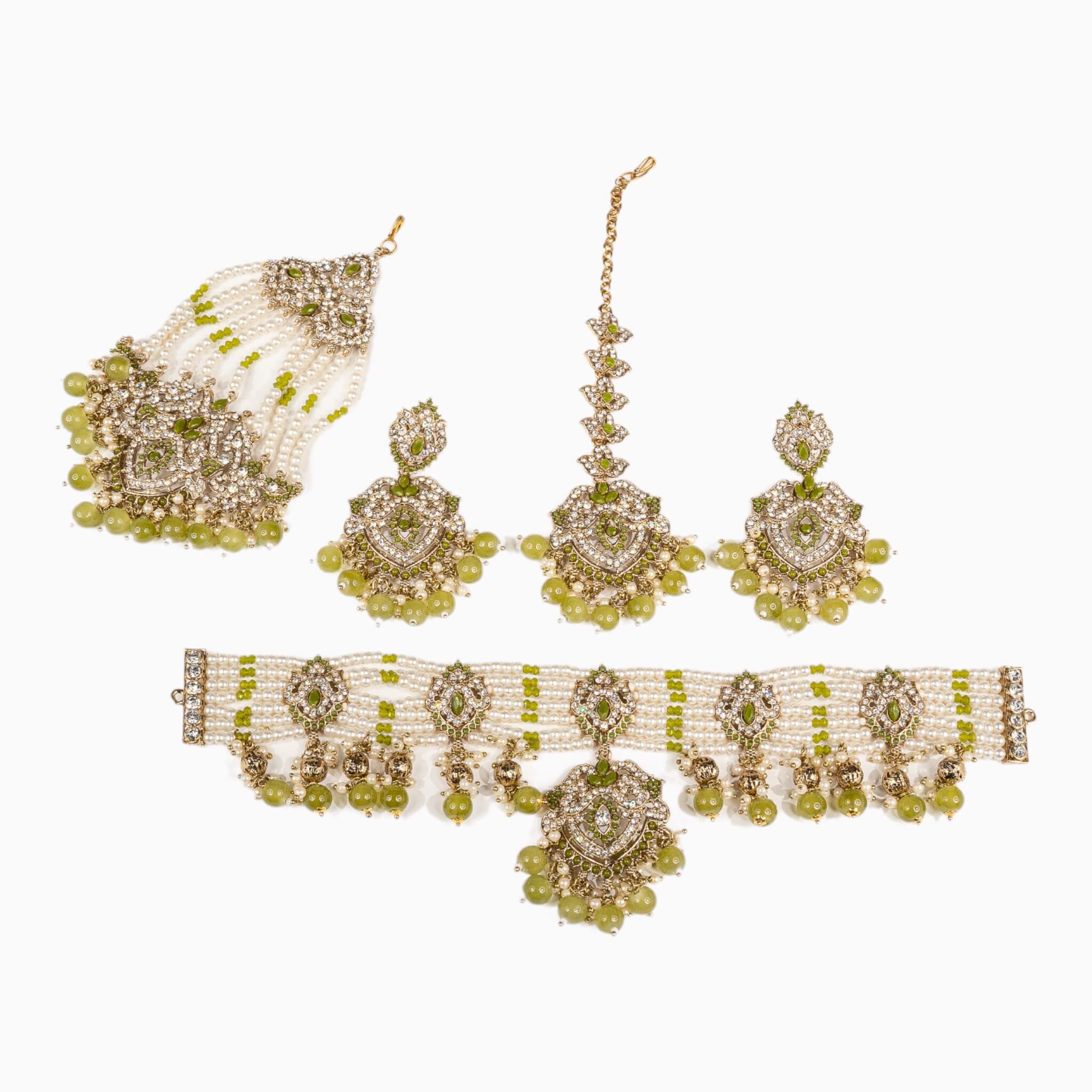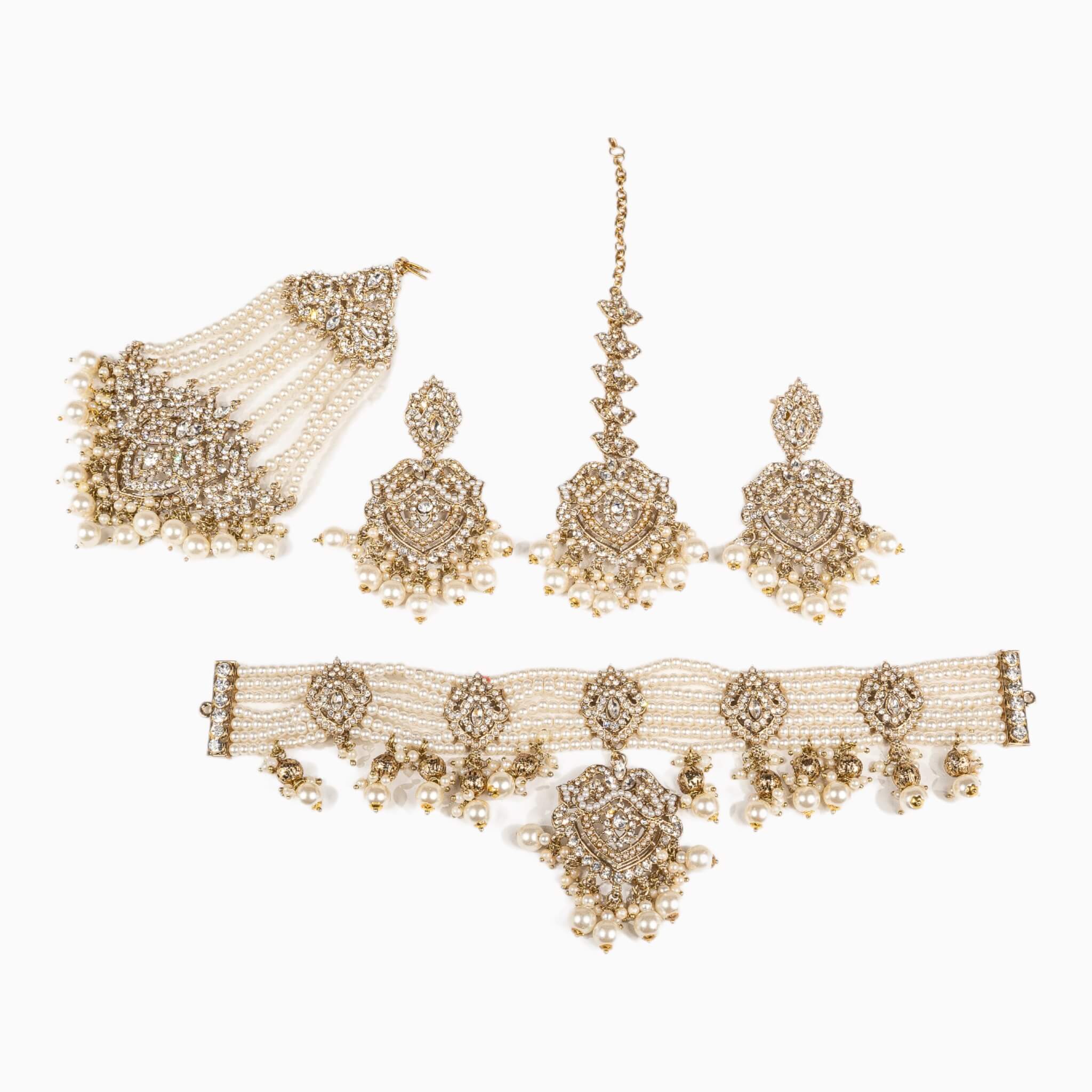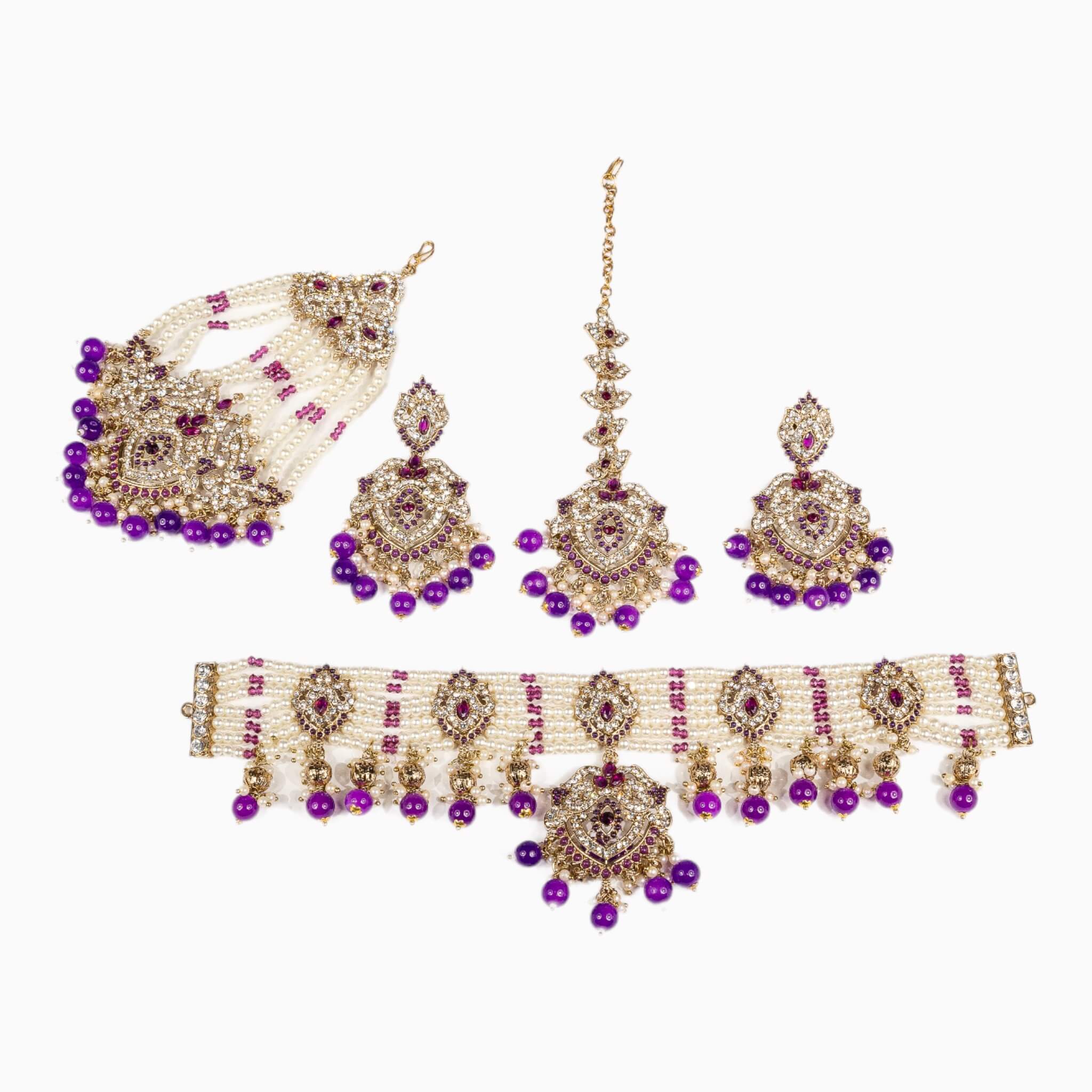 Introducing Rajni, the perfect choker set for traditional occasions. Crafted from durable materials, this set comes with a choker, earrings, a tikka, and a matching jhommar. The adjustable choker lets you adjust the fit to your needs. Look elegant at your next occasion with Rajni.