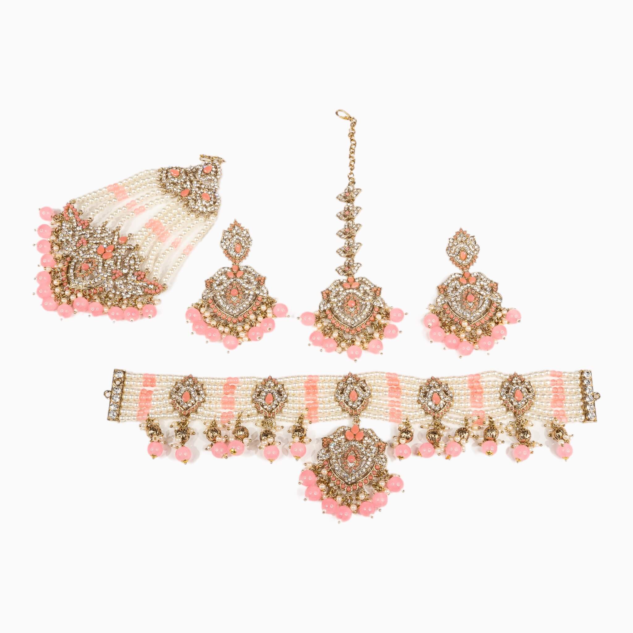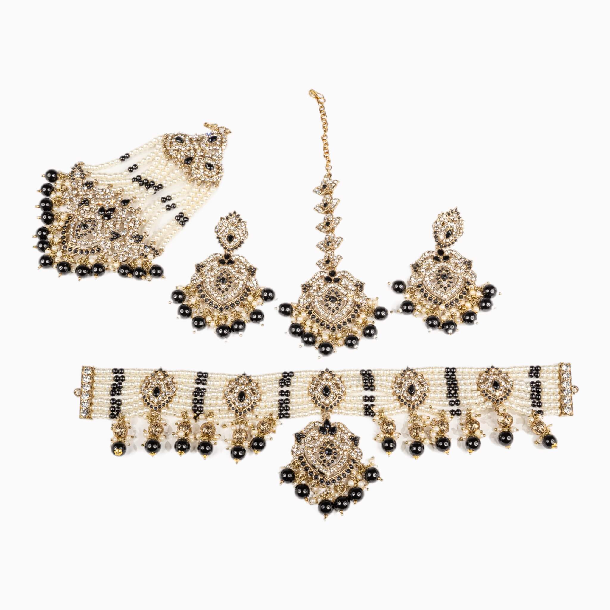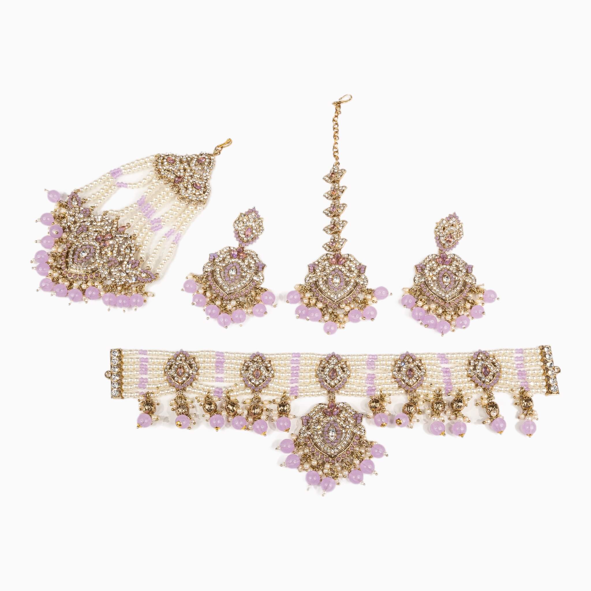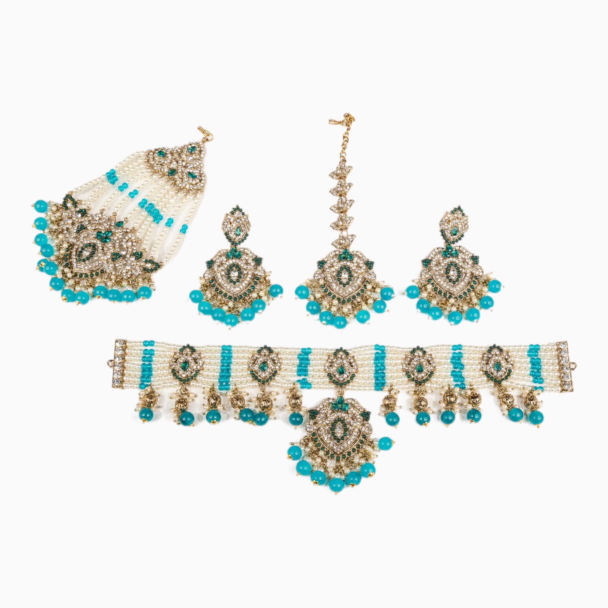 Introducing Rajni, the perfect choker set for traditional occasions. Crafted from durable materials, this set comes with a choker, earrings, a tikka, and a matching jhommar. The adjustable choker lets you adjust the fit to your needs. Look elegant at your next occasion with Rajni.